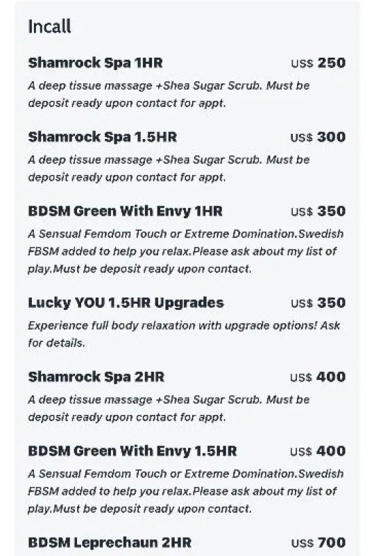 THANK YOU FOR VISITING MY PAGE☺ Please take a minute to glance through my ad. I hope the information provided will answer many of your questions, and give you an idea of the type of session you will enjoy when you are with me. ❤Schedule❤ Fort Collins,CO 3/25-4/1(Private Incall Only) While in Fort Collins I’m have four appts available please book now while there is time. Availability is from 9AM-7PM. 🌀Newbies must submit booking info to see me if you don’t I will not respond to your text till I receive the following booking info👇🏾 1.) Your name,age and race 2.) The city you are in 3.) Preferred meeting time & day 4.) Type of Appt/Length of your meeting 5.) Where did you see my post Please be deposit ready via cashapp,ApplePay ,Zelle or Venmo when booking me..... 🙋🏼PICK THE SESSION THAT APPLYS TO YOU March Specials 🍀Shamrock Spa 250 90MIN A deep tissue massage +Shea Sugar Scrub. 🍀Lucky YOU 90MIN-Varies On Upgrade Experience full body relaxation with upgrade options! Ask for details. 🏏BDSM Green W/Envy 359 90MIN A Sensual Femdom Touch or Extreme Domination.Swedish FBSM added to help you relax. Please ask about my list of play. When requesting prostate play/pegging is an additional +100 please make sure to do a water enema before your appt or the day before your session.If you poop or 💩 is seen during this play there will be additional $200 I will need during your session and your session will be canceled. Poop is not a pleasant smell and I have deep clean and sanitize the area you have poop on and get rid of 💩 smell . 🌀Returning friends I seen before are welcome to text/call me. 🌀I catering to generous, respectful, chivalrous suitors over 35 🌀I prefer appts to be booked 2-3 hours before your preferred meeting time. 🌀I appreciate a suitor that wants to get know me on a deeper level. In order to achieve this blissful level of authenticity, 90MINS or more encounters are always preferred. 🌀Do to my low volume preferences, I can only make time to see a small number of 1-2 special sensual voyagers. ☘My time is very valuable and my schedule will fill up very quickly. ☘I expect that you be a gentleman at all times and respect any boundaries that I have. 🚫All time wasters will blocked and will not be able to see me in the future. Can't wait to get together, •🌹•Lady Rose •🌹•