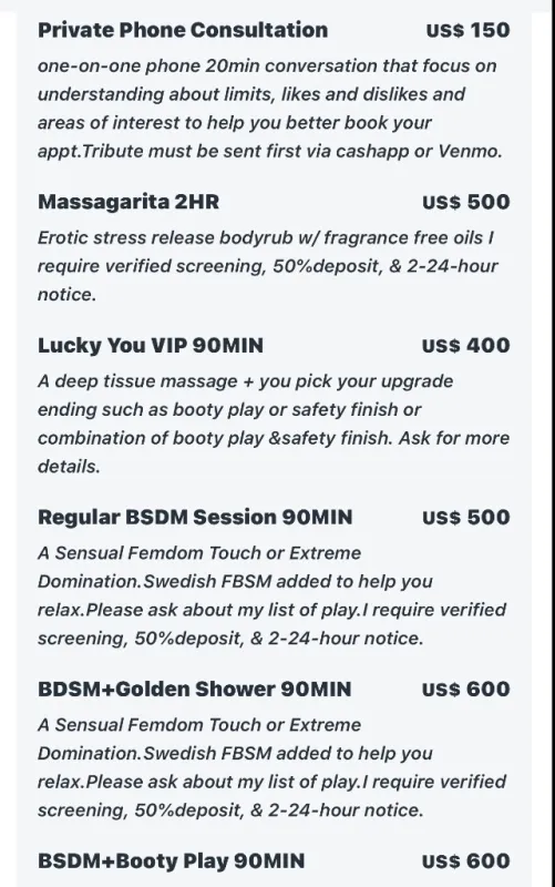 Hi High-End Caliber Suitors Over 40 Exotic Curvy Beauty || 5'2 || 170lbs || 38DDD I am a BDSM Dominatrix, Strap-On Ready/Prostate Play Expert and masseuse only. I have started my fall semester to finish my Masters in Business Administration. Hosting in FOCO till 8/30 Appts must 2hr or 24hrs in advance All Timewasters will be blocked. Lucky You QV VIP IC SPCS Avail 2DAY&THURS QV 20MIN+ Happy Ending =150 QV 20MIN Massage + Prostate Play=250 QV 20MIN Massage + Safety Finish=250 QV 20MIN Massage+Prostate Play+Safety Finish =300 Text this info to speed up booking process ... ⚜Name Age,Race ⚜What city are you in ⚜Session Type ⚜Duration of your appt ⚜Preferred Date & Time Of Your Appt ⚜Where did you see my ad Must be deposit ready upon booking me via cashapp or Venmo or ApplePay or Zelle I’m Verified N Reviewed! Are You 📌 TNA:Lady Christian 📌 P411: P195430